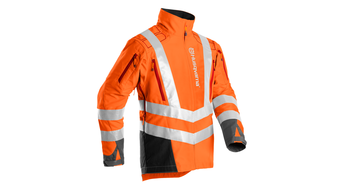 Jacka speciellt utformad för att arbeta långa timmar med sele. Godkänd enligt EN ISO 20471 klass 3. Plats för extra vaddering för att avlasta axlarna. Fickorna är lätta att nå, även när du bär sele. Dragkedjor för ventilation under armarna och ventilation i ryggen håller temperaturen på en behaglig nivå. En ny armkonstruktion och ergonomiskt förböjda armar ger dig hög rörlighet tillsammans med 4-vägs stretchtyg på baksidan.