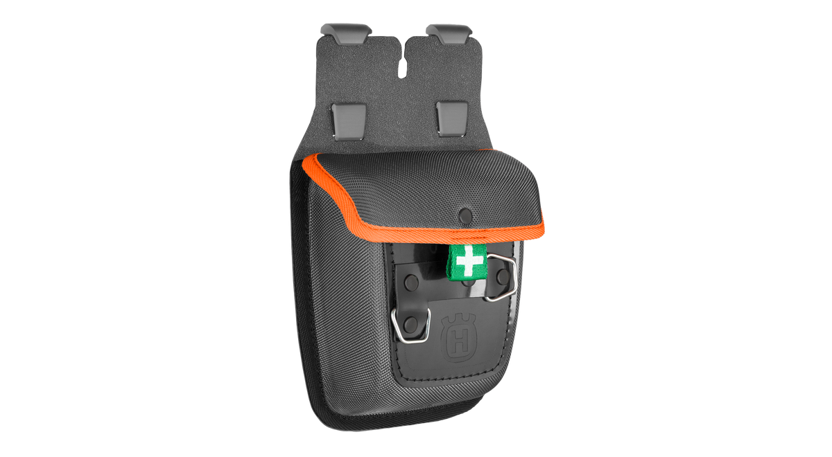 Bakstycke med plats för saker som första förband, GPS-spårare, mellanmål och andra småsaker.
