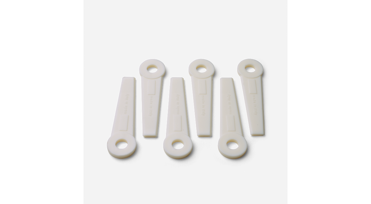 Lämplig för frodigt gräs och när det finns sten i terrängen. Väl synliga, utbytbara plastslagor, skonsamma mot träd och buskar. För 25 – 65 cc maskiner.