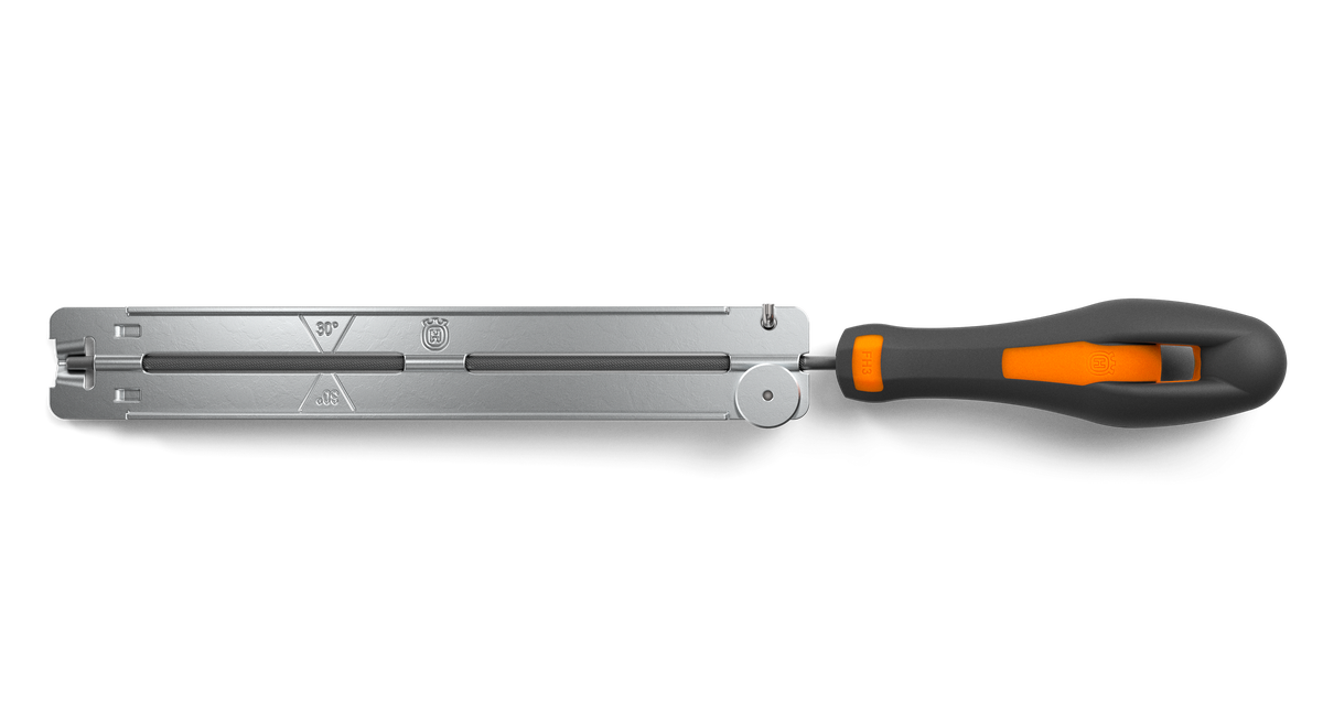 Specialkonstruerade filmallar för rätt filningsvinkel. Finns till Husqvarnas sågkedjor.