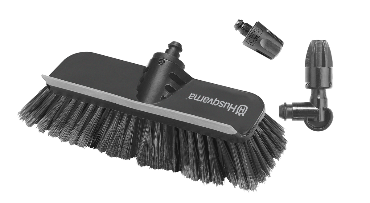 I fordonssatsen ingår ett bredare munstycke för snabb och skonsam rengöring av känsliga ytor, ett vinklat munstycke för svåråtkomliga utrymmen och en tvättborste med gummiraka.