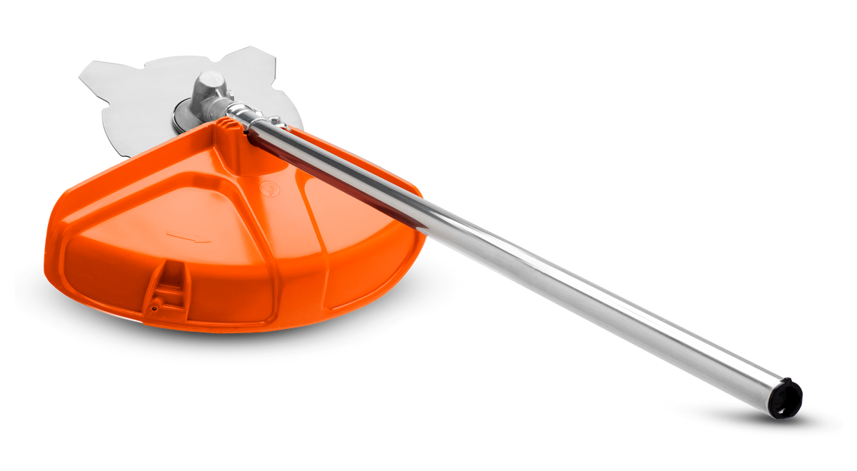 Utrustad med kombiskydd och gräsklinga Multi 255-4. Levereras komplett med J-handtag och sele.