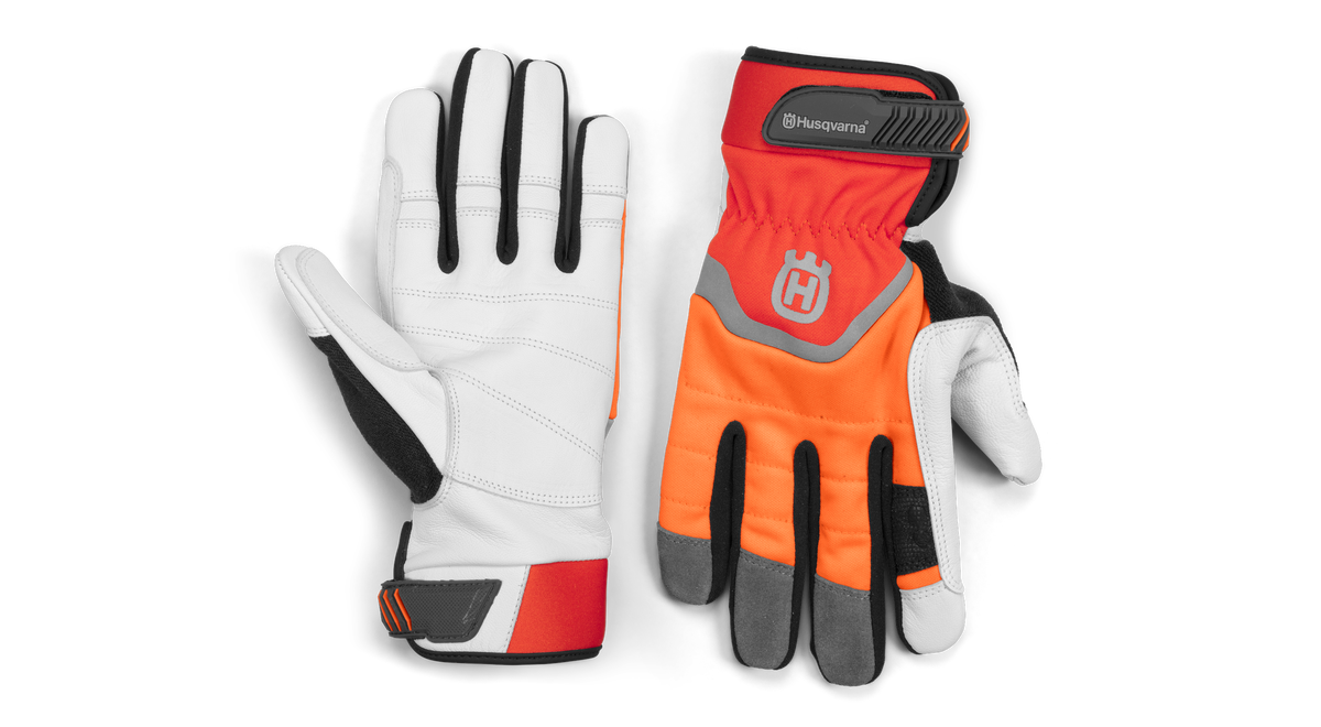 Bekväma skyddshandskar utformade för skogsarbete. Handflatan på denna arbetshandske är gjord av slitstarkt, naturligt vattentåligt getskinn. De dubbla tumsömmarna följer handens form. Handryggen är gjord av laminerat spandextyg för maximal komfort. Pekfingret har en pekskärmsvänlig knoge så att du kan använda din smartphone med handskar på. Kardborrestängningen ger en åtsittande passform och hög rörlighet. Uppfyller EN 388:2016- 3132X.