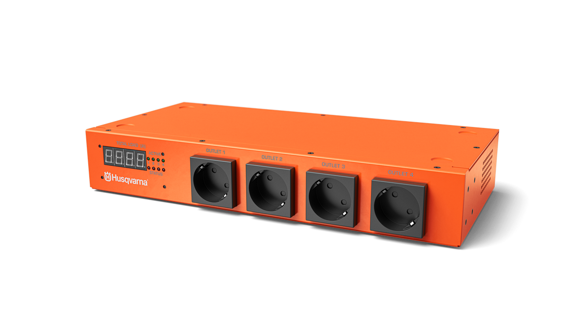 Husqvarna 230-PDMX4 gör att du kan ansluta flera laddare utan att riskera att överbelasta en elektrisk krets. Genom att detektera ampereuttaget för varje batteri distribuerar den ström till varje batteriladdare, vilket möjliggör effektiv laddning utan att du behöver modifiera säkringssystemet i din verkstad. Anslut upp till fyra enheter till en enda PDM, som på ett intelligent sätt håller den maximala kretsbelastningen under 16 A, även när flera laddningsaggregat används samtidigt. Tack vare lastavkänningstekniken växlar systemet automatiskt ström från fulladdade enheter till de som behöver ström, vilket gör det möjligt att ladda över natten utan att behöva byta batteri. Genom att använda Husqvarna 230-PDM moteringssats multi (finns som tillbehör) ger det här skalbara systemet möjlighet att dubbla eller fyrdubbla laddningskapaciteten.
