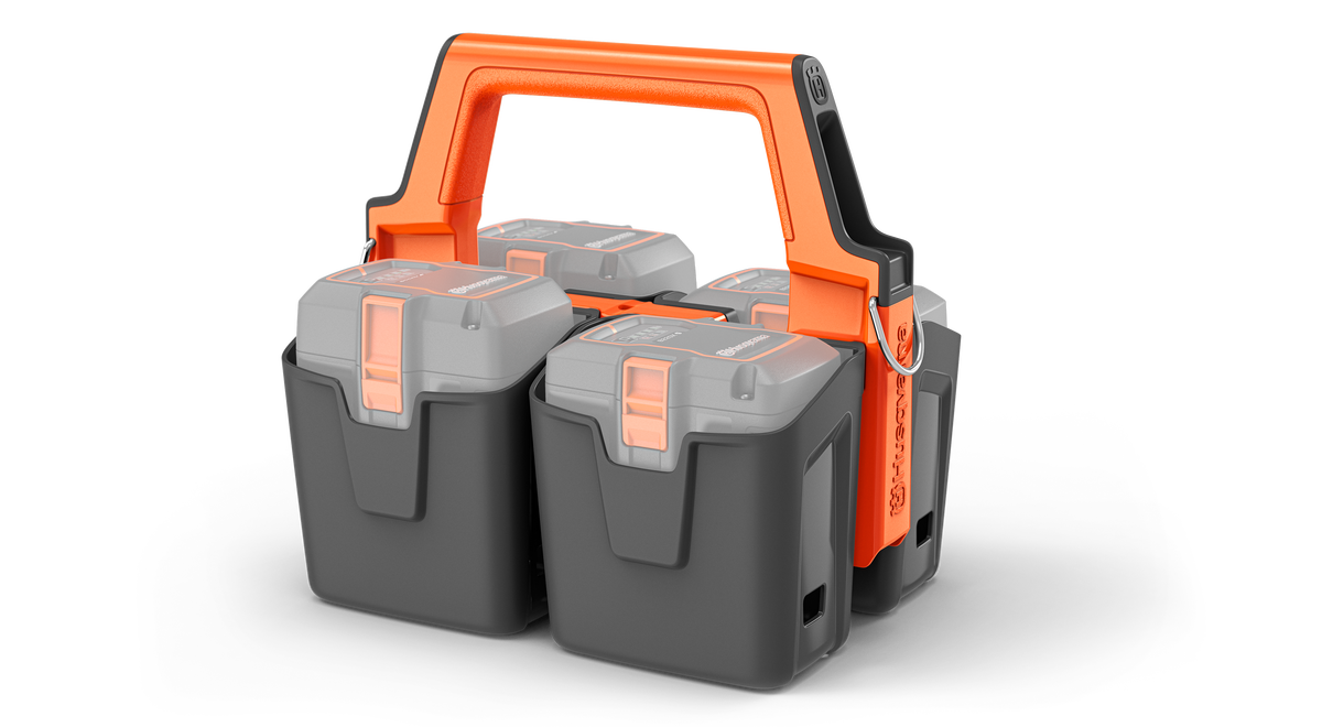 Husqvarnas batteriväska är lätt att bära med sig och gör att du kan hålla ordning på arbetsplatsen med säker förvaring av och smidig åtkomst till upp till fyra Husqvarna BLi-X 36 V-batterier. Batteriväskan gör det enkelt att transportera din utrustning och skyddar mot skador tack vare sin robusta utformning. En spårningssändare kan placeras i ett dolt fack. Batterier medföljer ej.