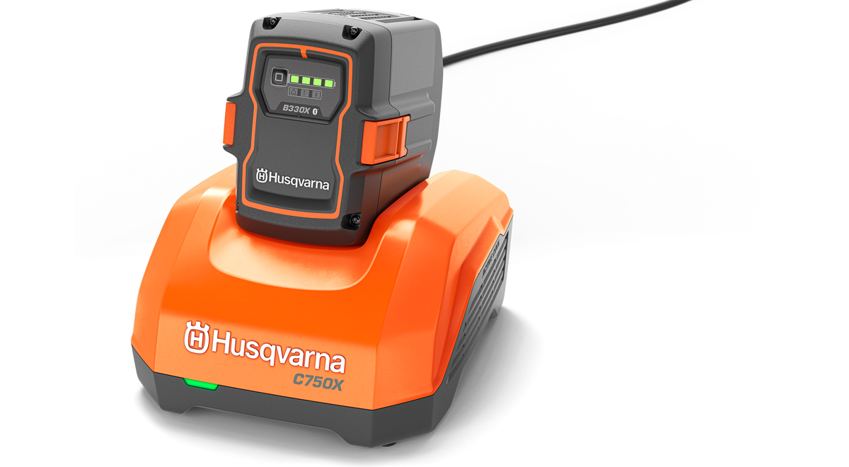 Husqvarnas laddare C750X är en högeffektiv laddare som är optimerad för snabb laddning av batterier med hög kapacitet i det flexibla 36 V-batterisystemet Husqvarna BLi-X. C750X har en laddningseffekt på 750 W och ActiveCool, ett aktivt luftkylningssystem med integrerade fläktar som möjliggör snabb laddning av batterier med hög laddningskapacitet utan behov av tidskrävande avkylningsperioder. Laddaren kan antingen placeras på ett skrivbord, en hylla eller enkelt monteras på väggen med en väggmonteringsplatta som finns som tillbehör.
