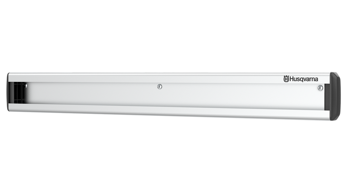 Organisera dina trädgårdsredskap bekvämt och snyggt i begränsat utrymme med denna väggmonterade förvaringsskena. Smart, effektiv förvaring för Husqvarna produkter, såväl som Aspire™-serien. Alla Aspire™-produkter kommer med en skräddarsydd krok som passar den här förvaringsskenan. Varje skena är 640 mm bred och när din verktygssamling växer kan du enkelt utöka med fler skenor. 3 mm aluminiumoxid säkerställer att din förvaring känns lika premium och robust som dina verktyg. En sats med förvaringskrokar kan köpas separat och användas till alla dina trädgårdsredskap, så som handverktyg, vattenslang eller kvast. Skruvar, plastpluggar och gavlar medföljer för en snyggt monterad skena.