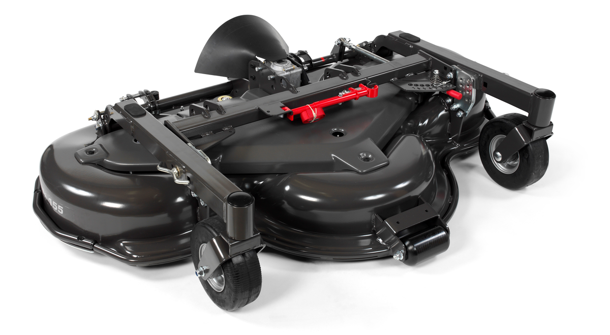 Högpresterande 155 cm kombiaggregat. En innovativ teknisk lösning från Husqvarna som ger ett kombinationsaggregat med mulching och bakutkast i ett och samma aggregat. Kraftig aggregatkonstruktion pressat i ett stålplåtstycke.