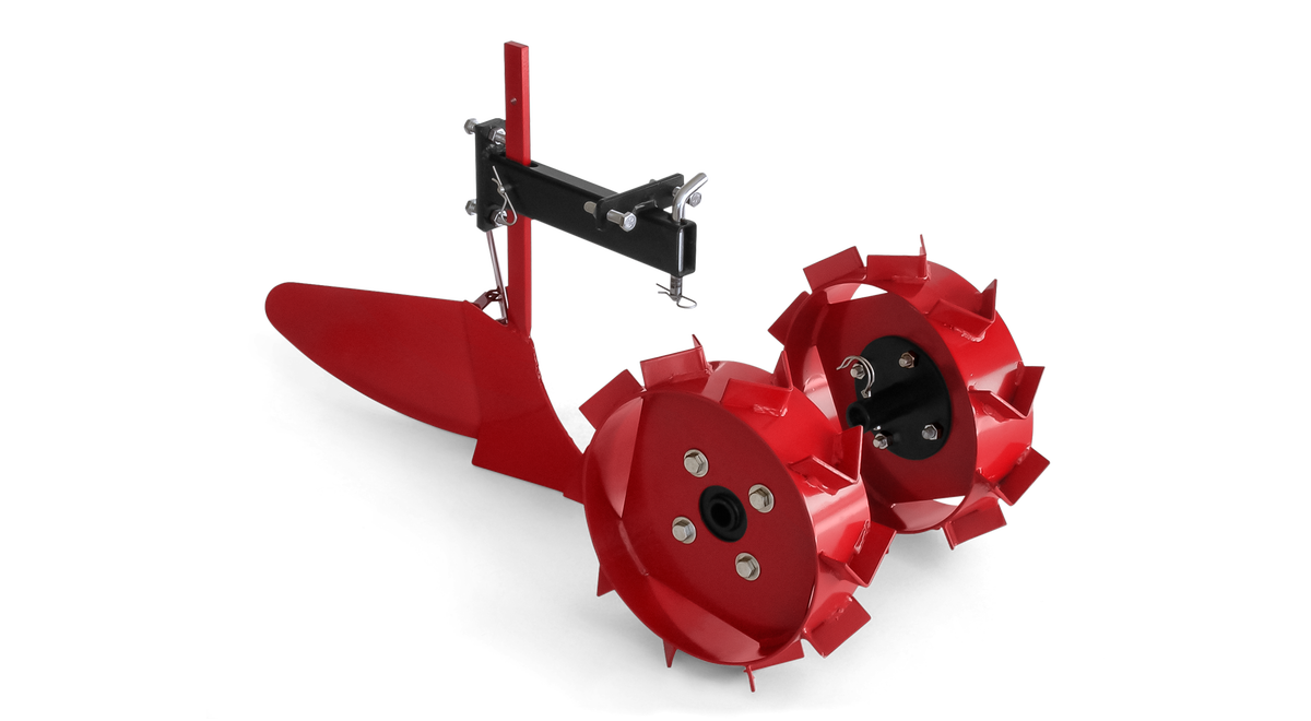 Använd din jordfräs för plogning av trädgårdstäppan med tillbehöret kupplog.
