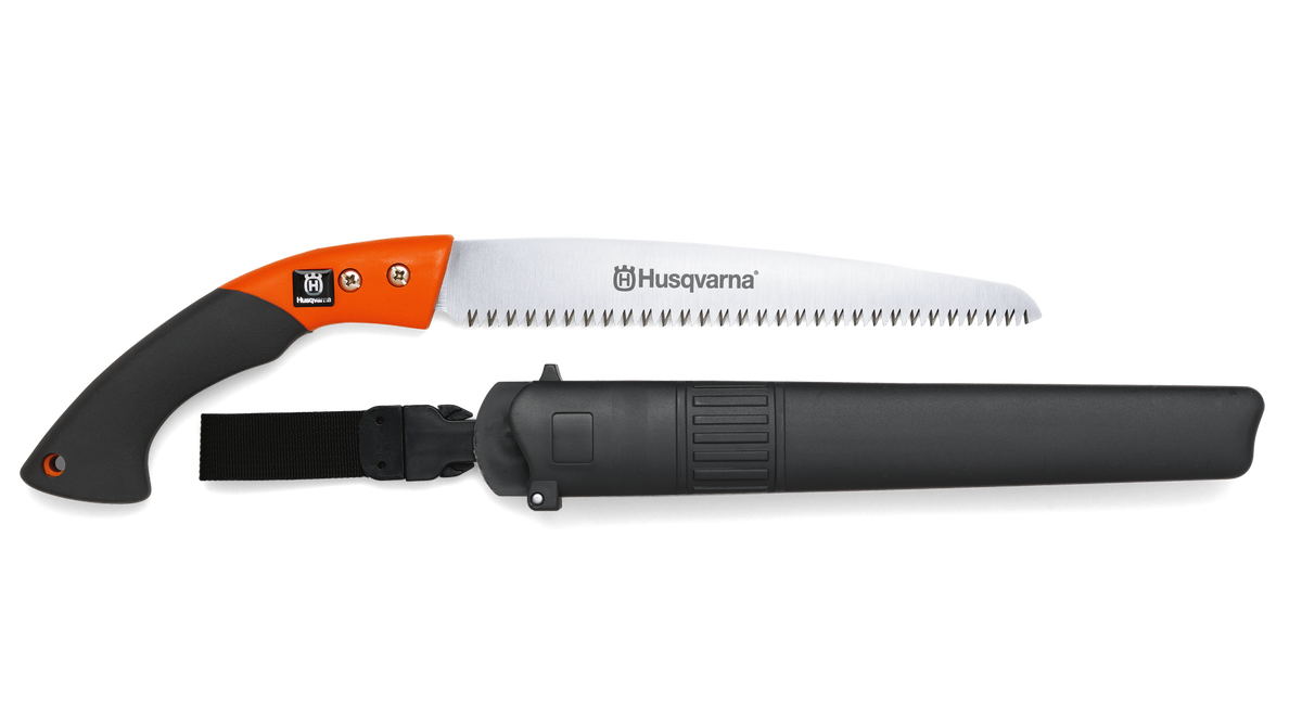 Lätt grensåg av högkvalitativt stål och försedd med greppvänligt handtag. Praktiskt hölster att fästa i bältet med ett clips för att enkelt lossa grensågen när den används. Grensågen sågar vid dragande skär. För beskärning av trä, plaströr, väggskivor och beskärning av grenar. Bladet är tillverkat av värmebehandlat kolstål, förkromat och rostbeständigt. Grensågen behöver ej slipas vid normal användning.