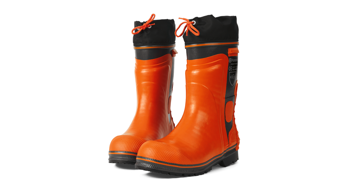 Handgjord stövel med godkänt sågskydd. Extra förstärkt överdel med tåhätta och förstärkning runt sulan. – Hälkappan gör det lättare att ta av och på kängan. Bomullsfoder. Sulan kan förses med dubbar.