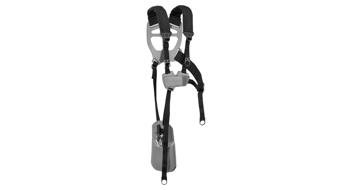 En ergonomisk sele som fördelar trycket opimalt mellan axlar, bröstkorg och rygg. Stoppade remmar och bred ryggplatta reducerar trycket ytterligare. Utrustad med stötdämpad puta som flyter vilket gör att maskinen kan manövreras med minsta möjliga kroppsrörelser.